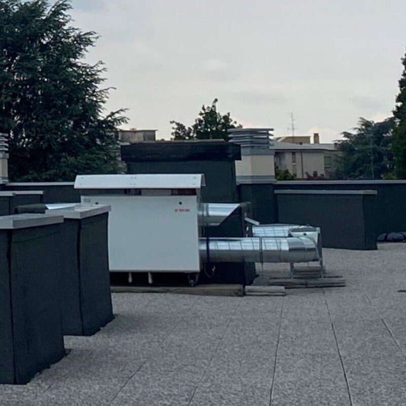All’interno di questa nuova costruzione a Monza, abbiamo realizzato un impianto di VMC Centralizzato a Doppio Flusso con unità sul tetto, per servire gli appartamenti.